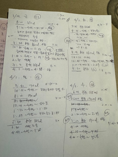 단순히 수유시간, 수면시간만 기록한다기 보다는 아기가 잘 때 어떻게 잤는지, 기분과 상태가 어땠는지 분단위로 세심하게 관찰해주시고 기록해주셔서 정말 많은 도움이 됐어요